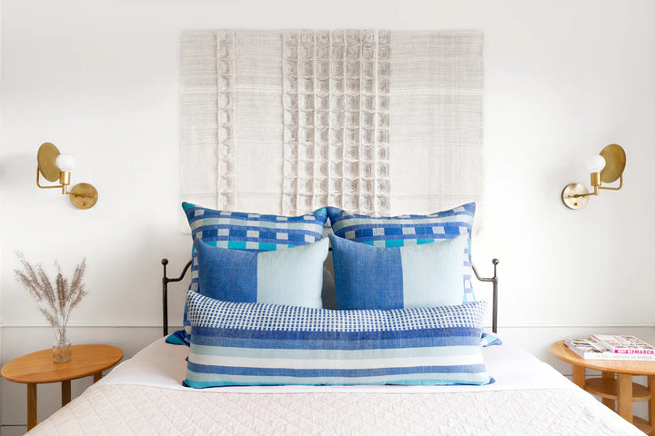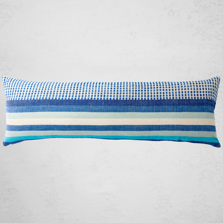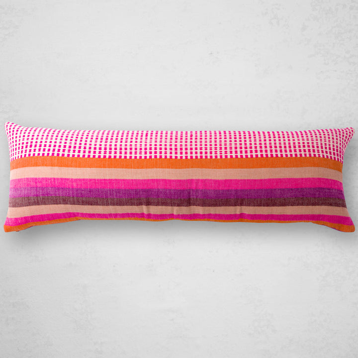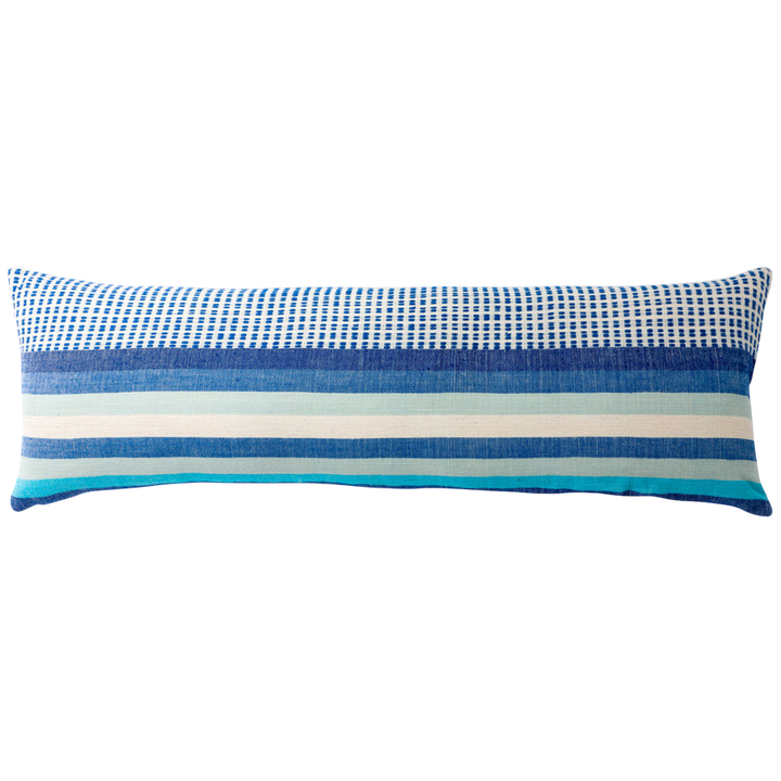 A mix of patterns are used to balance the Suri Lumbar Pillow. Accent your home with bold horizontal strokes, capped off with dotted pattern—a motif inspired by unique beadwork worn by the youth of Omo Valley. The size of this style makes a definitive statement in any decor scheme. Named after the Suri tribe, it features traditionally handwoven textile crafted in soft Ethiopian cotton.